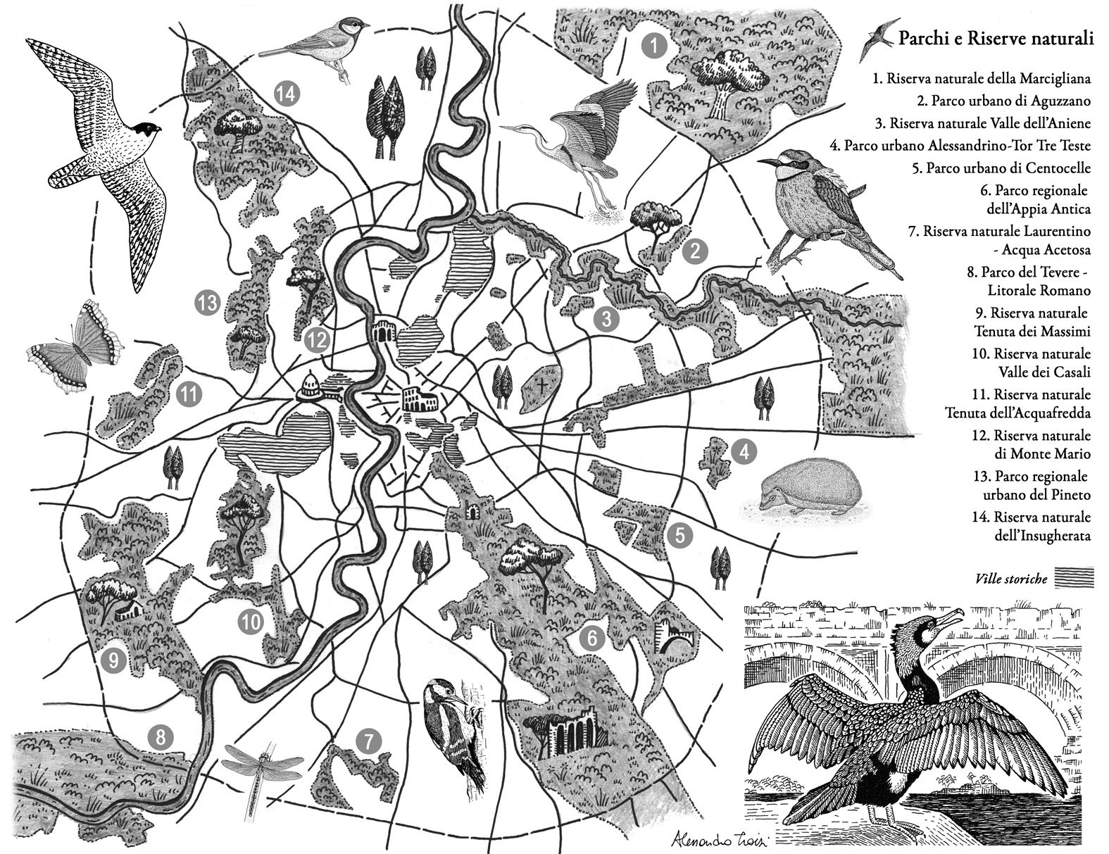 “A differenza di quello che si pensa, sono due corsi d’acqua vivi. Non a caso il tratto urbano dell’Aniene è un parco naturale e il Tevere mantiene ambienti interessanti, anche se frammentati. Gli animali che li abitano hanno trovato le condizioni migliori per restarci. A differenza di noi, non si fanno tante domande.”