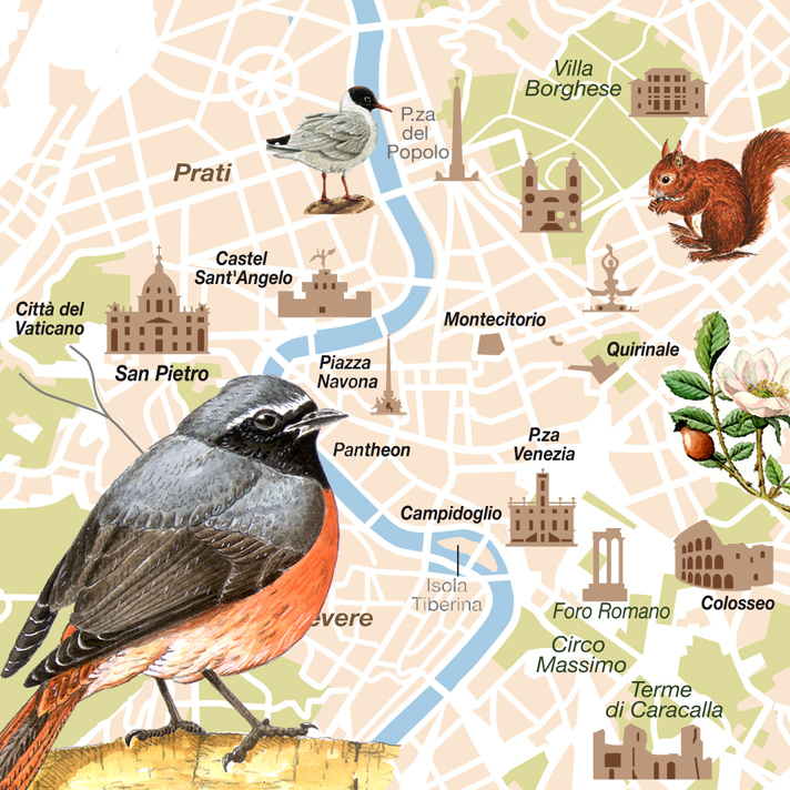 “Sorprende perché non conosciamo bene la nostra città. Roma ha le ville storiche, ben 14 aree protette regionali, ritagli di verde sparsi. Nell’insieme ha una percentuale di verde davvero interessante. Stiamo ovviamente parlando del territorio comunale. In quanto alla biodiversità, Roma è la città che ha più specie a livello europeo. Certo andrebbe ripercorsa la storia della città per capire come questa ricchezza sia anche figlia di un processo di urbanizzazione che ha tolto (molto) da una parte e conservato dall’altra. Diamo un po’ di dati su Roma verde: 129.000 ettari di estensione, di cui circa 86.000 occupati da aree verdi, agricole, non edificate. Cioè il 67% dell’intera superficie di Roma, tanto da diventare il comune agricolo più grande d’Europa. Per ogni abitante ci sono 13,78 mq di verde fruibile. Il territorio tutelato all’interno della città si estende per 82.500 ettari, pari al 64% dell’intera superficie, costituito da parchi naturali, ville storiche, giardini pubblici, aree verdi. 19 sono le aree e parchi protetti per un totale di 41.000 ettari, compresa un’area tutelata a mare. Ed ora la biodiversità: 1.649 specie di piante vascolari, dette anche piante superiori: 139 famiglie e 667 generi. La flora di Roma comprende 228 specie non native per l’Italia, 42 delle quali di introduzione antica e le altre 186 più recenti. Sono circa 300 le specie di licheni e ben 818 quelli di muschi. Per la fauna i dati sono ancor più interessanti: più di 5.000 specie di insetti, 22 di pesci, 10 di anfibi, 16 di rettili, 121 di uccelli e 39 di mammiferi. Gli uccelli, forse gli animali più visibili, hanno ben 78 specie nidificanti, 15 svernanti, cioè che passano l’inverno in città, 16 migratorie e 2 irregolari. E sono state segnalate 10 specie non indigene di cui 3 si riproducono regolarmente…”