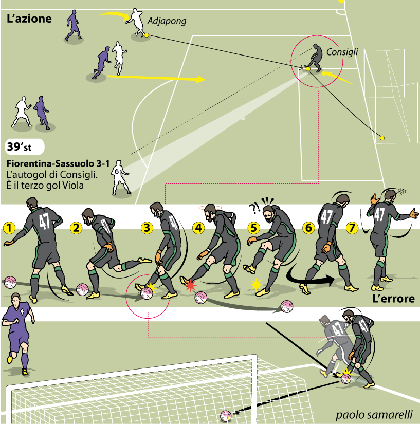 Neroverdi sconfitti per 3-1 dalla Fiorentina (61 punti), che torna alla vittoria dopo 4 partite. Domani valanga di critiche per il portiere Consigli, protagonista di un autogol clamoroso. Tuttavia sono cose che capitano e basta aver giocato nel parcheggio sotto casa per saperlo. Piace sempre sottolineare gli errori altrui. Non passerà mai di moda e i media su queste cose ci campano.